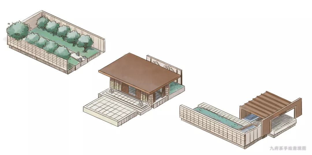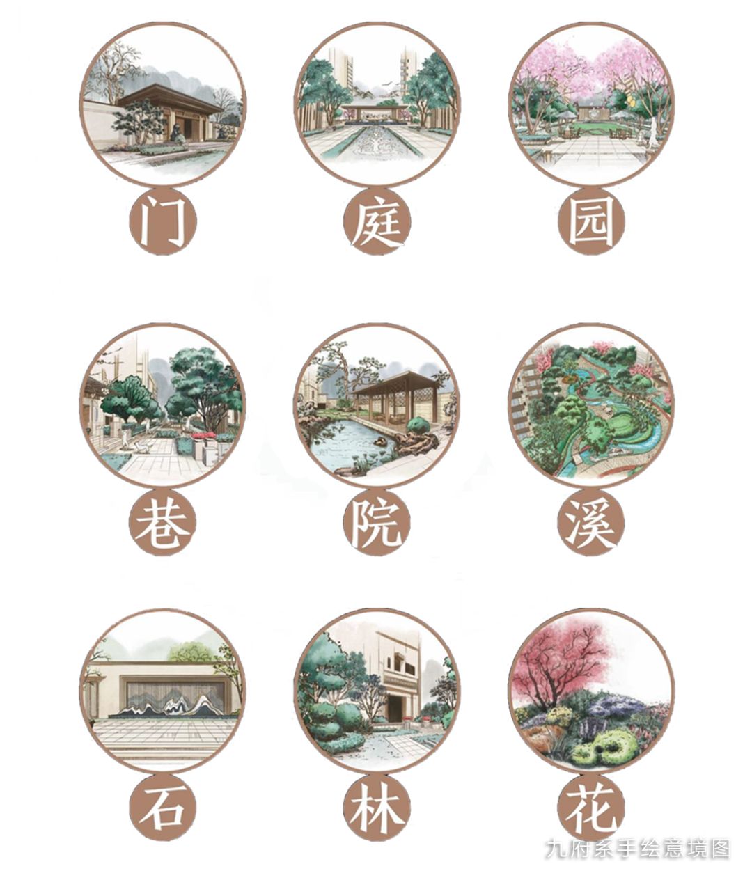 溯源宫廷园林,取殿宇庭园之胜景。九府系园林以中魂西技、古意今达的现代造园手法,通过九重景、九重境、九重品,演绎东方传统园林精髓。