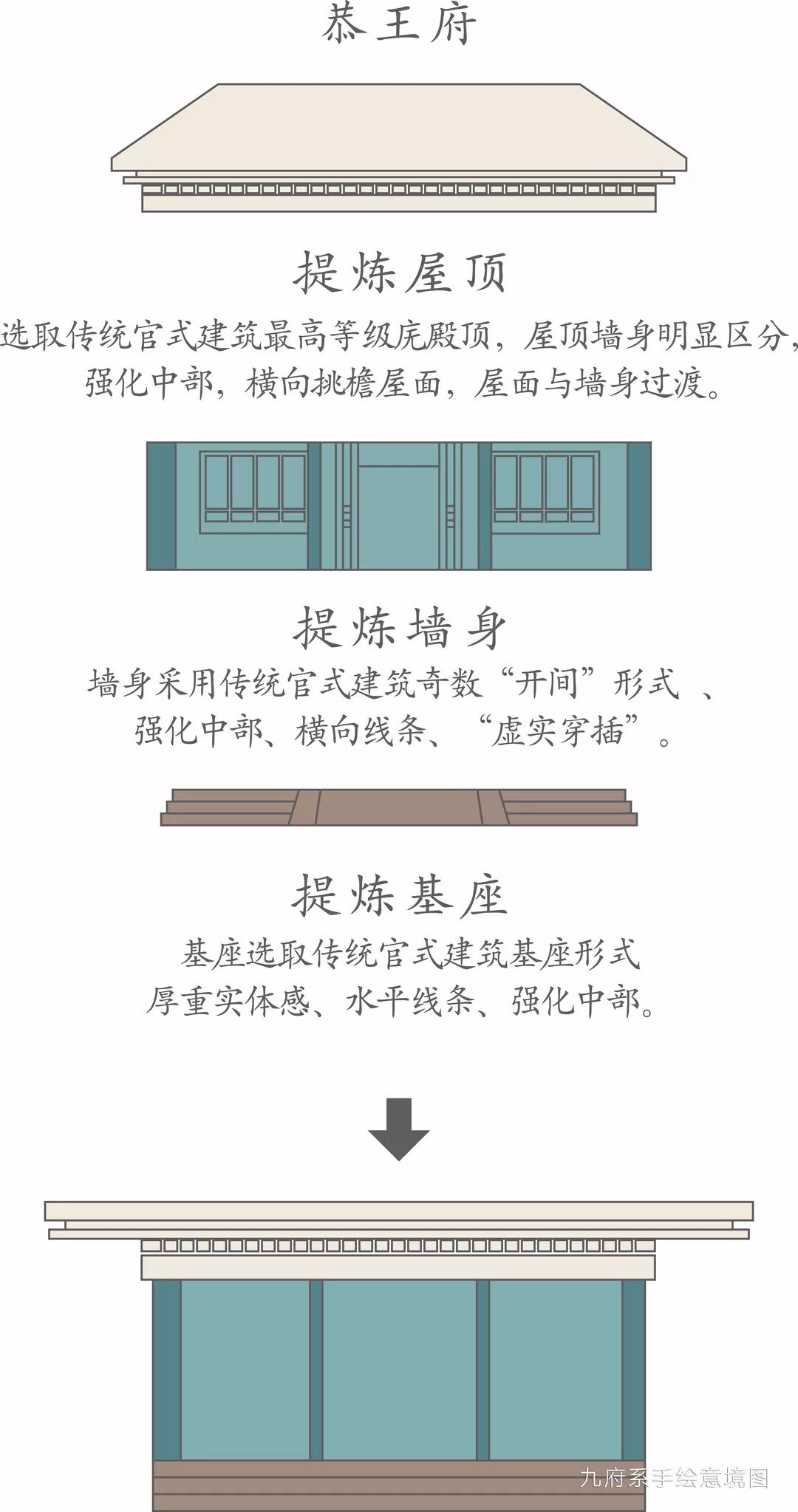中国传统王府官邸建造之初繁琐且严格区分等级制度,融创在取其尊贵显赫美学之精华同时,化繁为简,以现代简约之手法,重新表达中式美学建筑之精髓,至此,一座现代版的新东方美学人居——“九府”诞生。