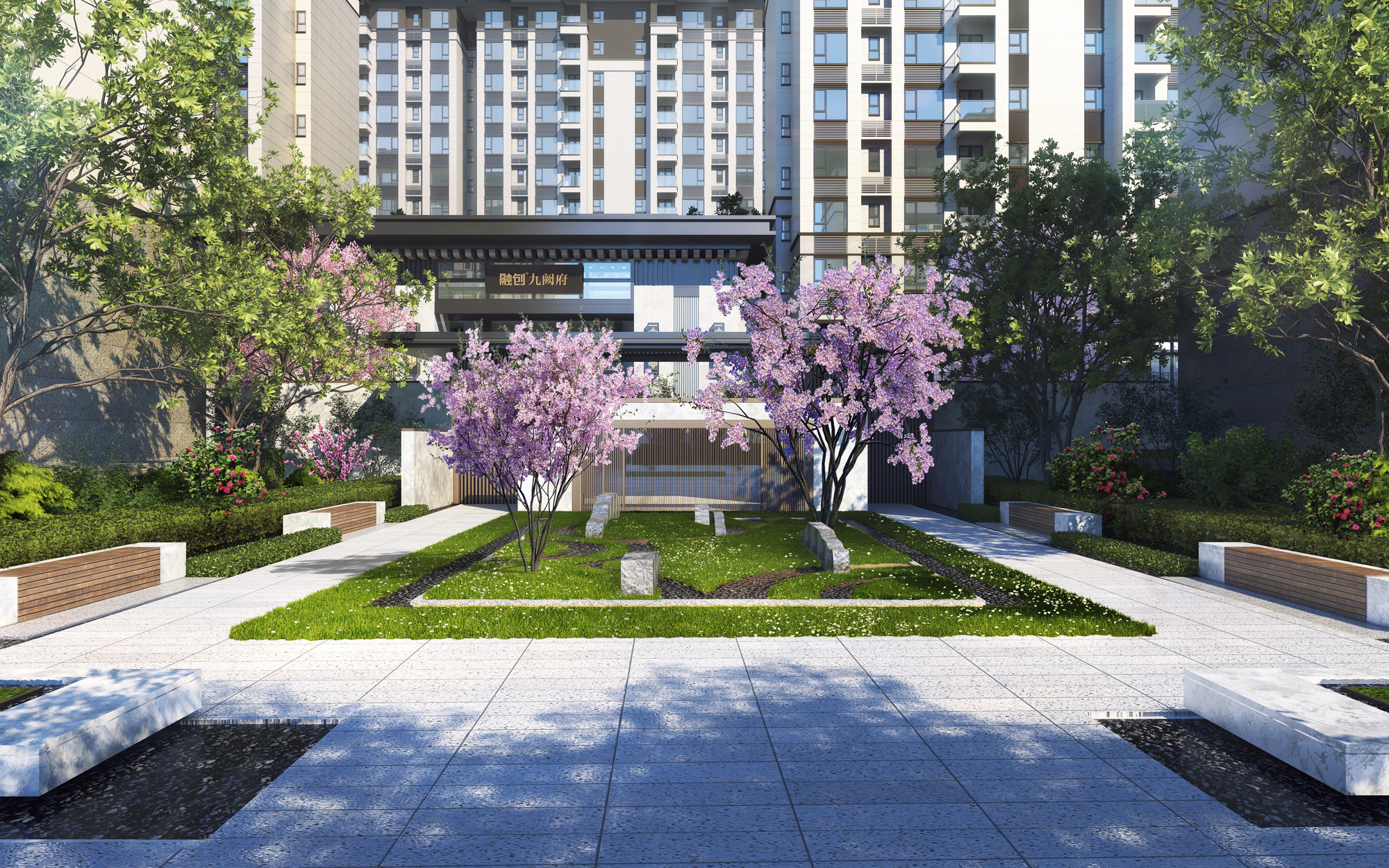 新东方建筑制式下的中式园林需要融合现代生活元素,打造更符合当下人审美的新型园林空间。通过园林属性空间,绵阳融创九阙府构建起起承转合的景观空间秩序。