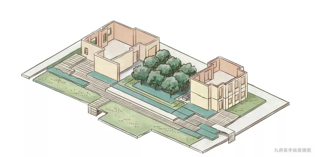 进入廊庭,入户平台下接错落台阶,曲意折桥,意境水景,独树一支,移步间,畅想游园之乐。